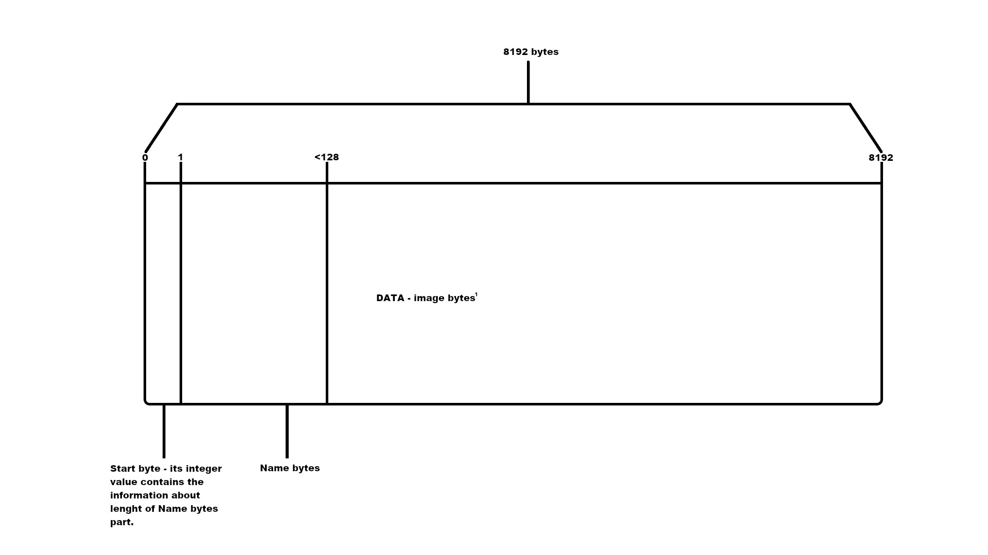 App transfers images in JFIF format, resolution is 250x150. App loads all data(image and metadata) to an array which length is 8192.