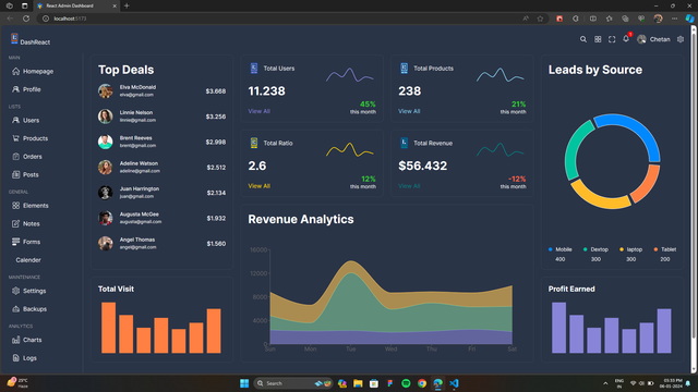 A responsive and customizable React Admin Dashboard built with React, TypeScript, SCSS, Material-UI, Recharts, and hosted on Vercel.