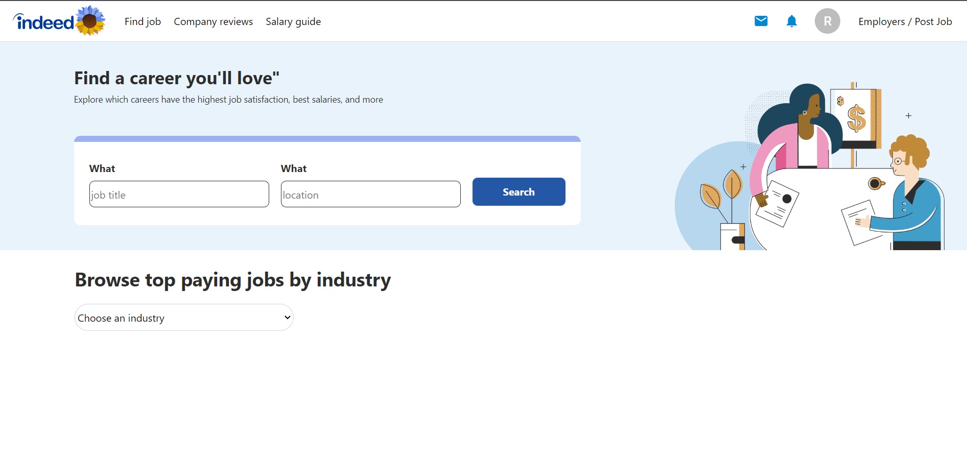 This is a team project, built by us in the Construct Week - Unit 5 at Masai School. In this project, we clone a website named “Indeed.com” this is aggregates job listings website from thousands of websites, including job boards, staffing firms, associations, and company career pages. Indeed began allowing job seekers to apply directly to jobs on Indeed's site and offering resume posting and storage & user can be able to search job according to their qualification
