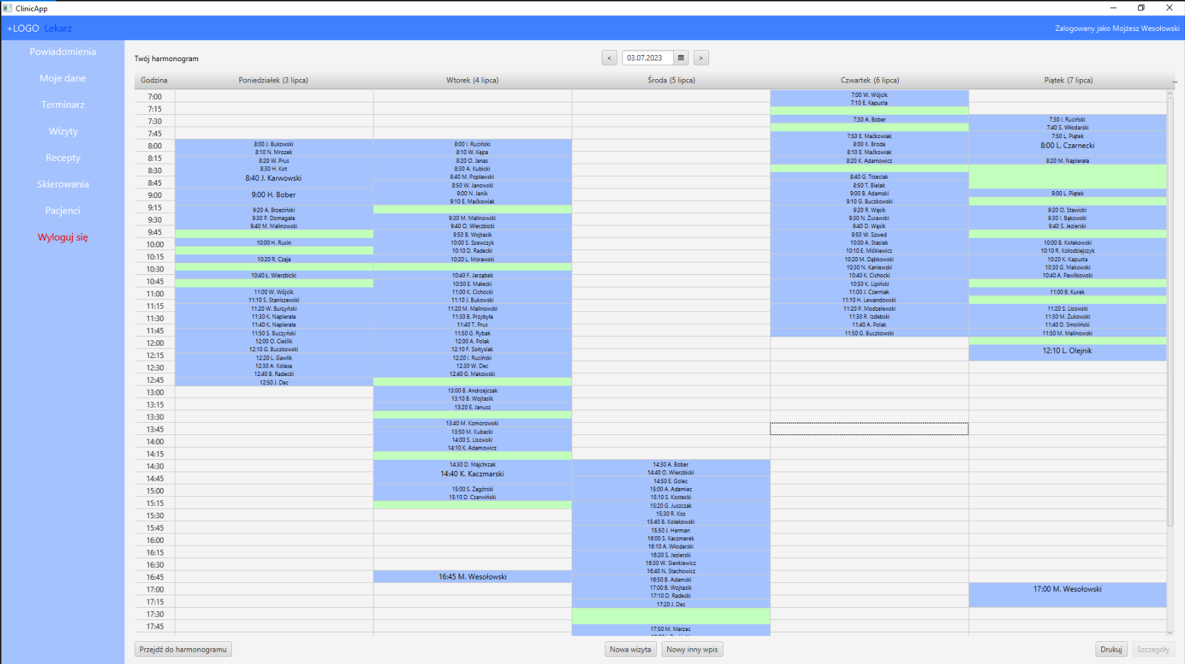 - Dodawanie wizyt (z uwzględnieniem terminarzy lekarzy)