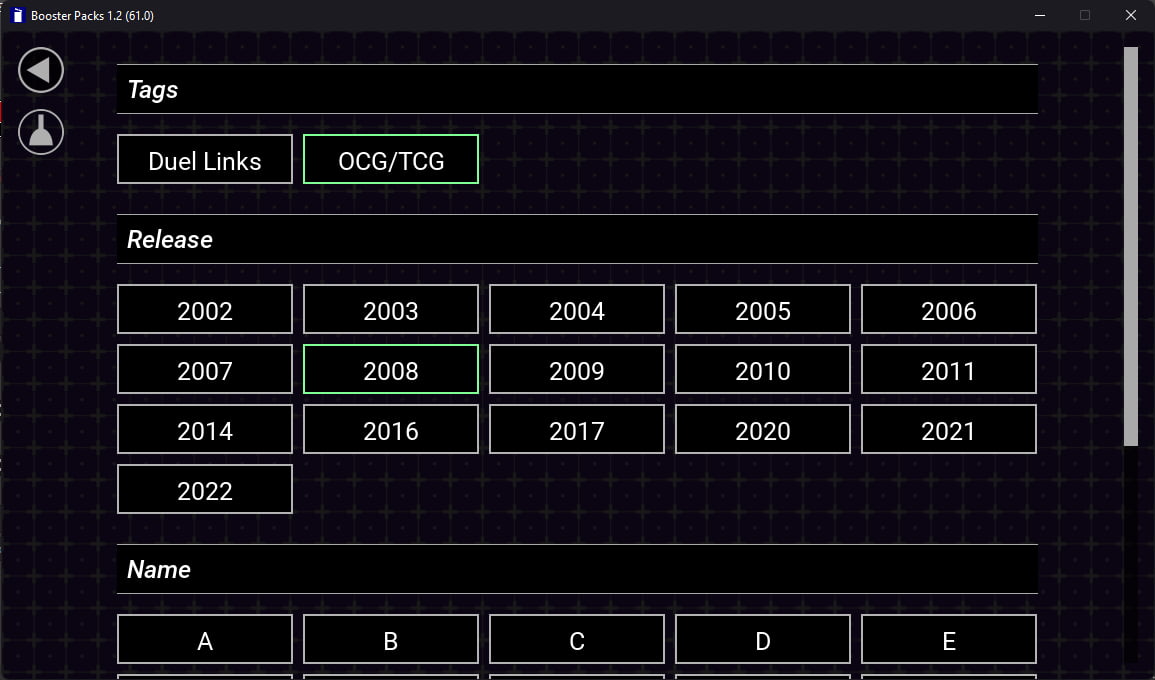 - Filter Screen: where the filters for the packs of the Selection Screen are defined;