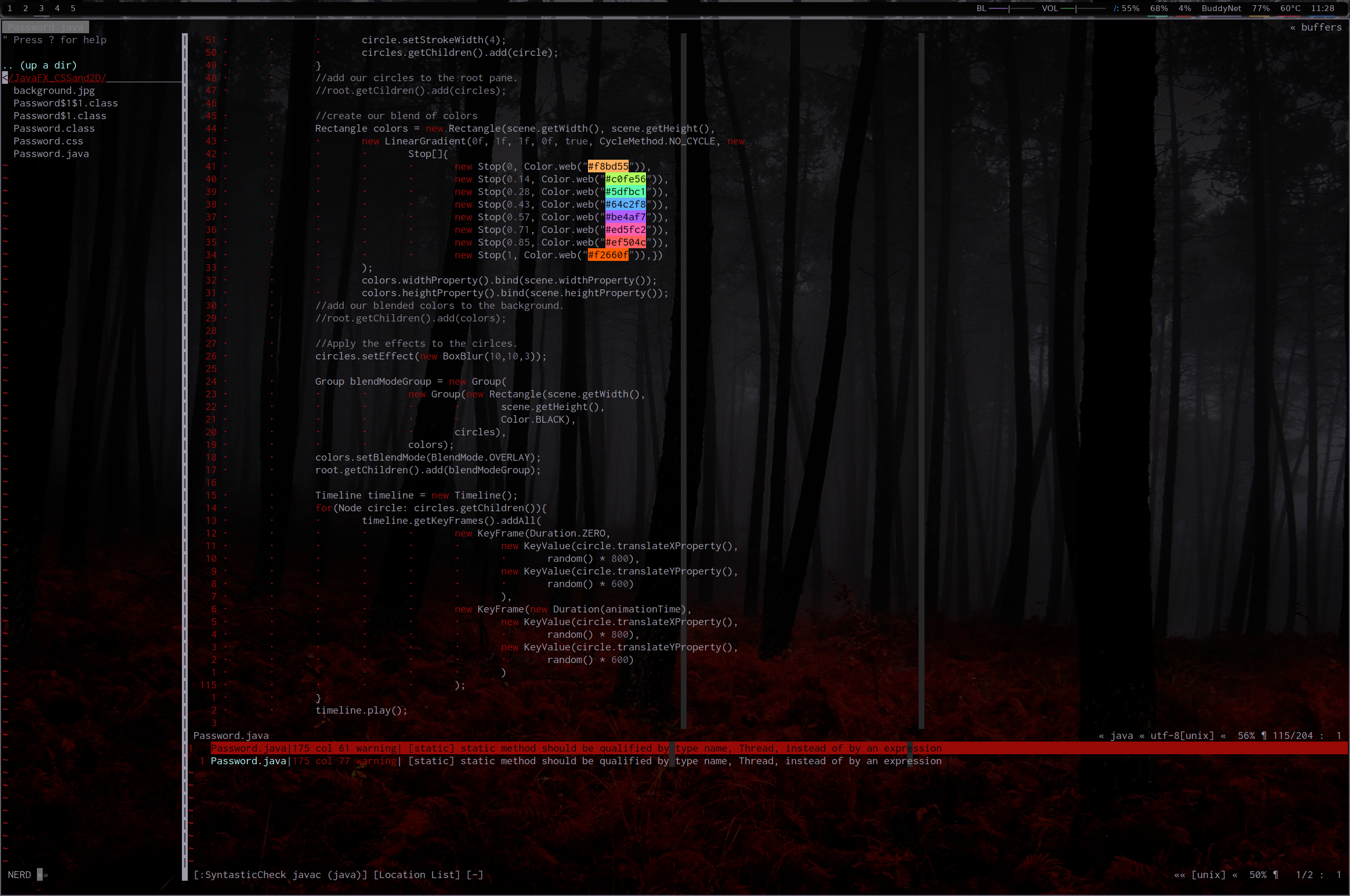 This shows some plugins (syntastic,colorizer,nerdtree) with one theme.