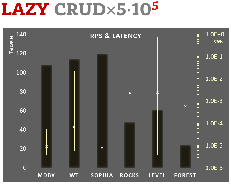 Linear scale on left and dark rectangles mean arithmetic mean of thousands transactions per second;