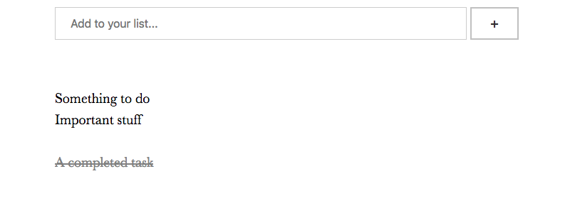 Keep track of all your tasks! All current items are stored locally, so you can pick right up from your last browser session.