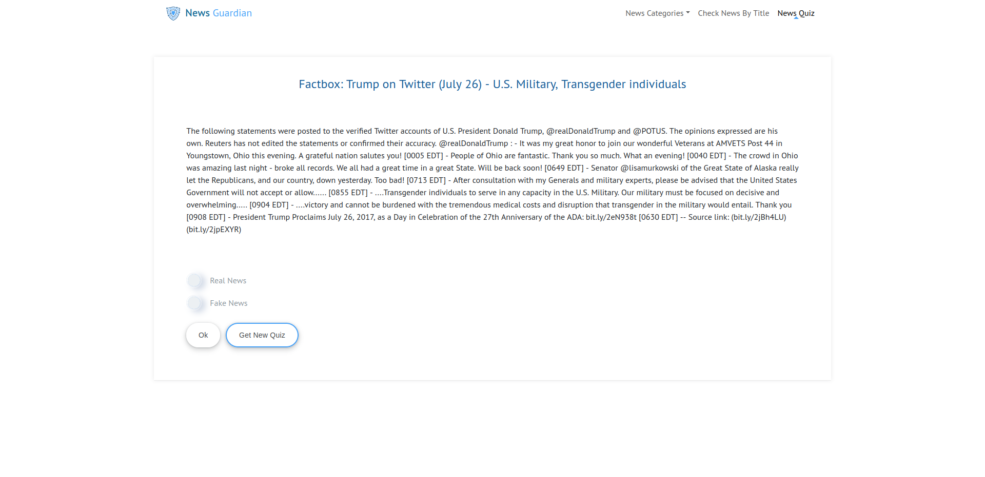 News Quiz: Test your fake news detection skills by taking our news quiz.