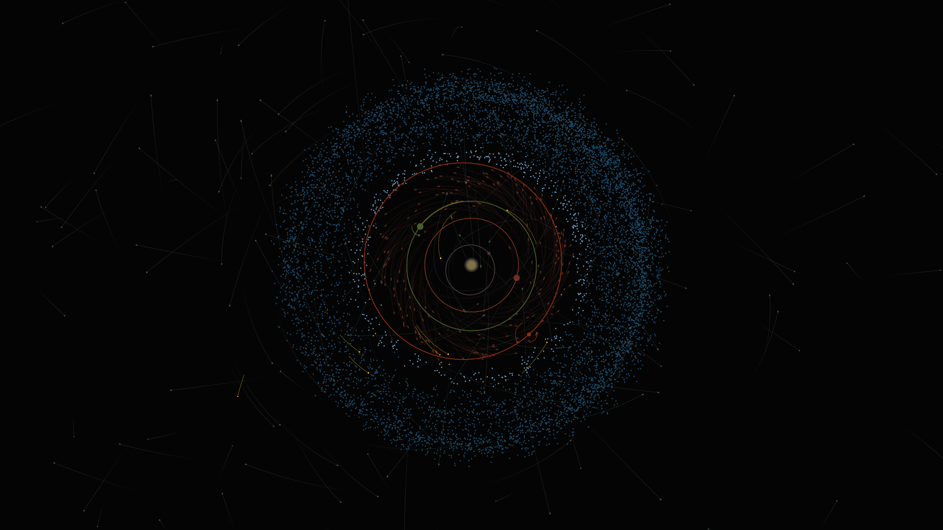 The project is divided into two parts. The first part is the data collection. The data is collected from NASA's JPL HORIZONS and NASA's JPL Small-Body Database. The collector script processes these data and generates a special file (called SSO) that contains all the data needed to draw the objects.