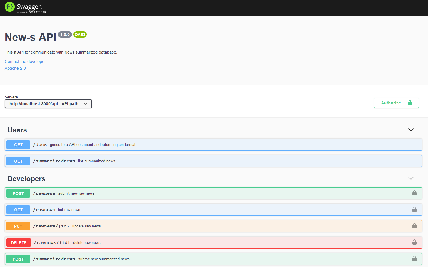 description: This a API for communicate with News summarized database.