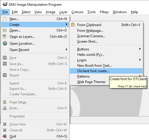 - Choose in Gimp: File -> Create -> Otclient font create...