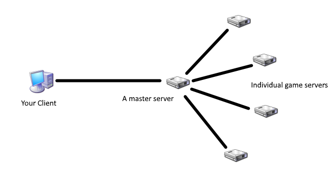 IW4x however uses a decentralized system in which servers directly inform the client of their presence and send their information, like so: