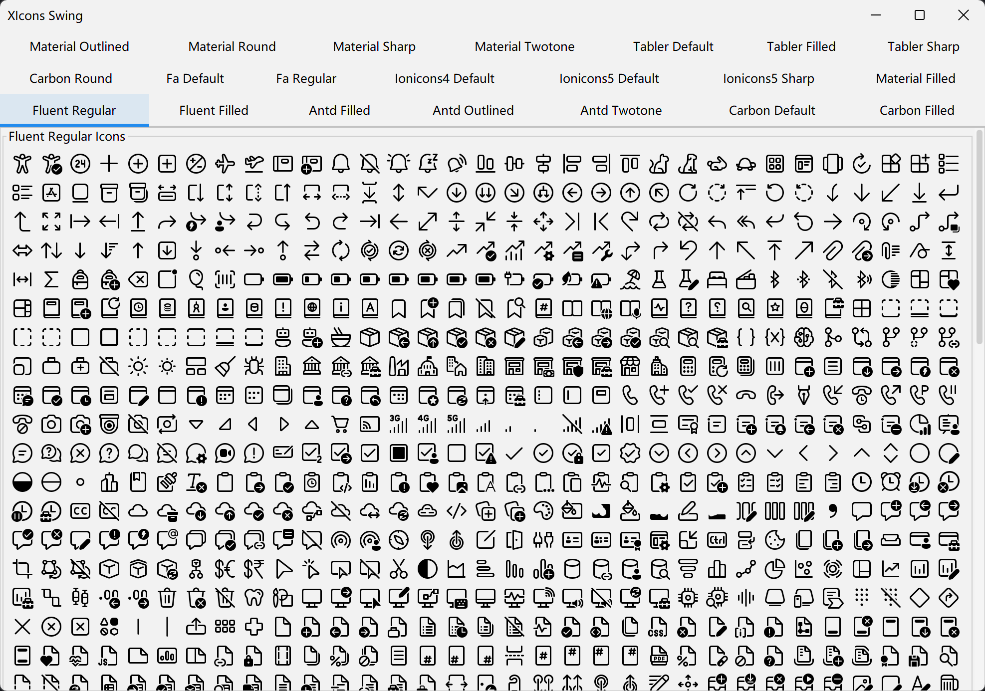 implementation 'cn.enaium.xicons:xicons-swing:1.0.0:fluent'implementation 'cn.enaium.xicons:xicons-jfx:1.0.0:fluent'Or in Kotlin DSL (build.gradle.kts):