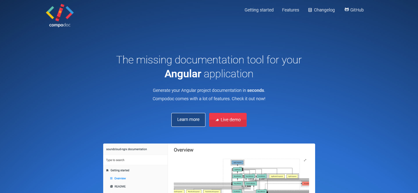 - Compodoc ajuda os desenvolvedores Angular fornecendo uma documentação clara e útil de seu aplicativo. Outros desenvolvedores de sua equipe ou visitantes da Internet para uma documentação pública podem compreender facilmente os recursos de seu aplicativo ou biblioteca.