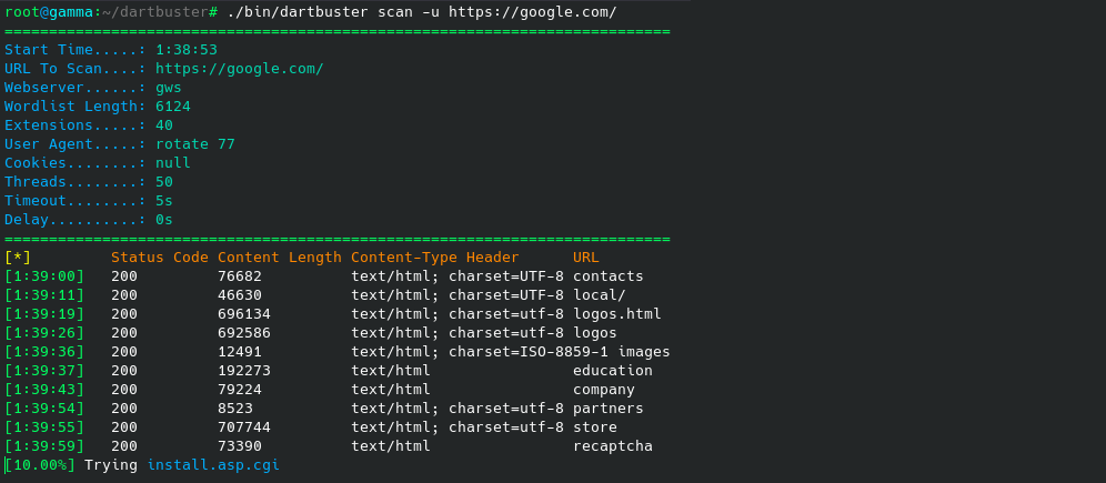 $ dart2native ./bin/dartbuster.dart -o bin/dartbuster- Real time scan progress and information