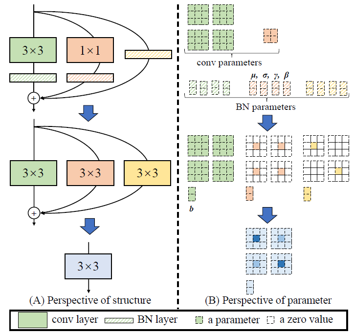 RepConv是一种有效增加模型容量的技术。在训练时添加额外的卷积层,在部署时通过权重融合去掉这部分计算。通常情况下,RepConv的权重融合是在pytorch层面做的,但是当训练代码比较复杂或者重复代码较多时,在onnx层面进行权重的融合,可能是一个更好的选择;相关原理参见论文: RepVGG: Making VGG-style ConvNets Great Again.