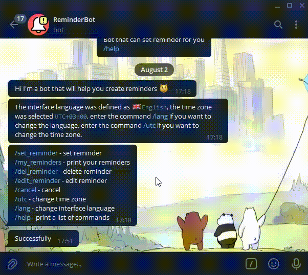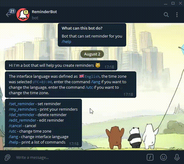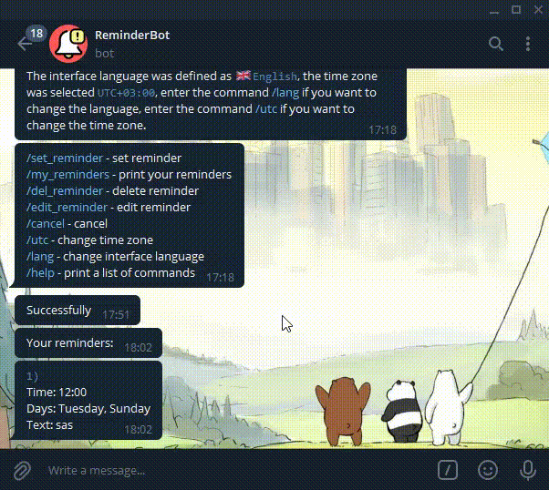 A Reminder Bot for Telegram on aiogram and sqlite3