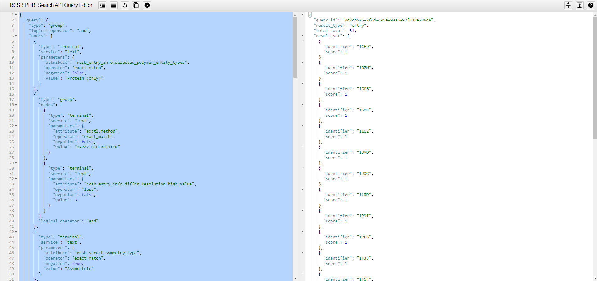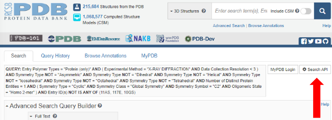 Copy the JSON query from the RCSB PDB site.