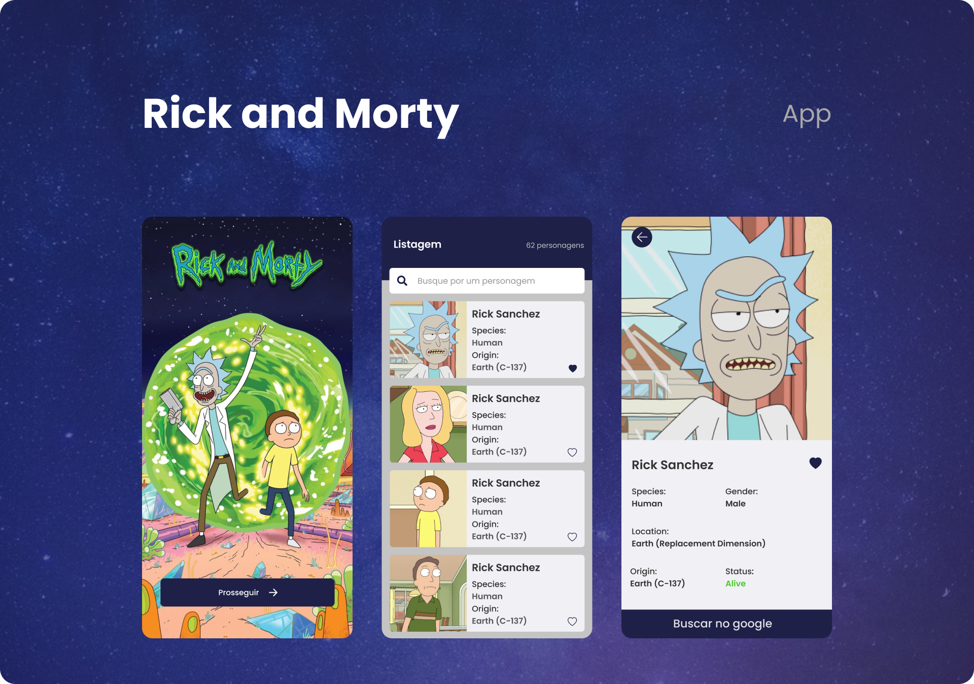 Aplicativo que contempla uma gama de informações sobre todos os personagens da série Rick and Morty construído com React Native.