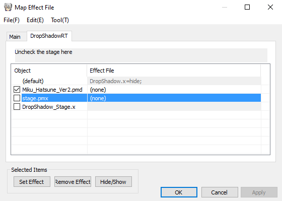 Uncheck the stage in "DropShadowRT" tab for the model's drop shadow to appear inside the stage. Everything else work the same way as the original version