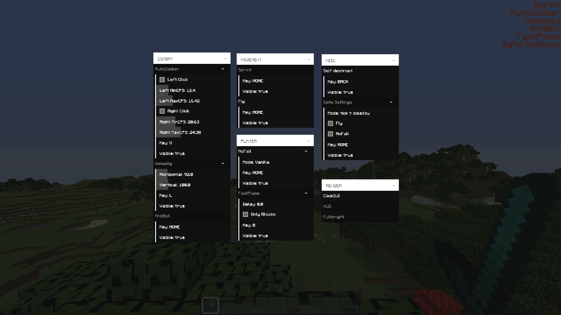- Fastplace There are others which do bypass, because they can't be considered hacks, such as sprint, and obviously, all visuals (under the render tab bypass).