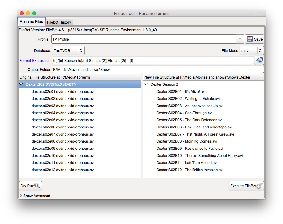 Press "Execute Filebot" to rename and sort your torrents, the window will close when the sorting is finished!