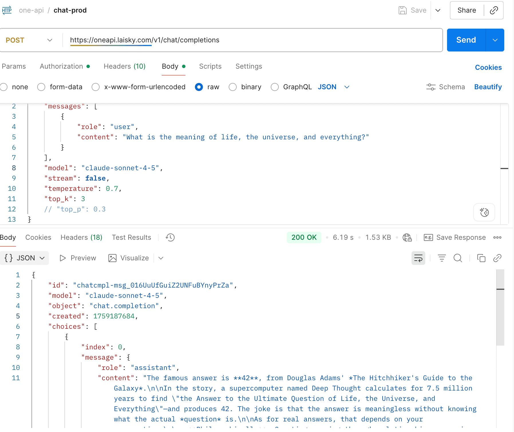 - Supporting different request formats; users can issue requests via Chat Completion, Response, or Claude Messages, which are automatically and transparently converted to the native request format of the upstream model. Even if the client sends a mismatched request format to wrong api endpoint, it will still be correctly processed.