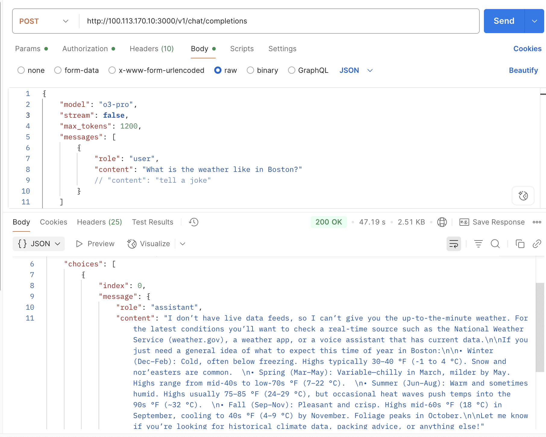 Response (stream=false) PASS 14.65s PASS 15.31s PASS 10.51s PASS 3.03s PASS 3.98s PASS 12.83s PASS 11.29s PASS 15.70s