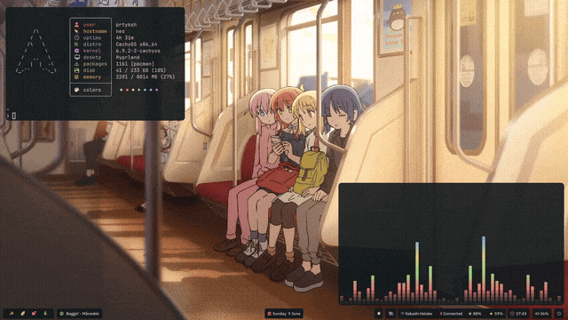 Inspired by the essence of 'seraphic,' as defined by Oxford, encapsulating beauty and purity akin to an angel, I embarked on transforming my system. Opting for the Everblush colorscheme, I aimed for minimalism without compromising on vibrancy. Despite my affinity for dark themes, I yearned for an explosion of colors - blooming and bright. This desire led me down the path of cuteness. Instead of adhering strictly to a colorscheme, I embraced the idea of a theme. Choosing 'cuteness' injected a sense of fun and creativity into the process, steering away from the mundane task of adhering to a predefined color palette. It's not just about the colors; it's about evoking a feeling, an ambiance - one that's as enchanting as it is delightful.