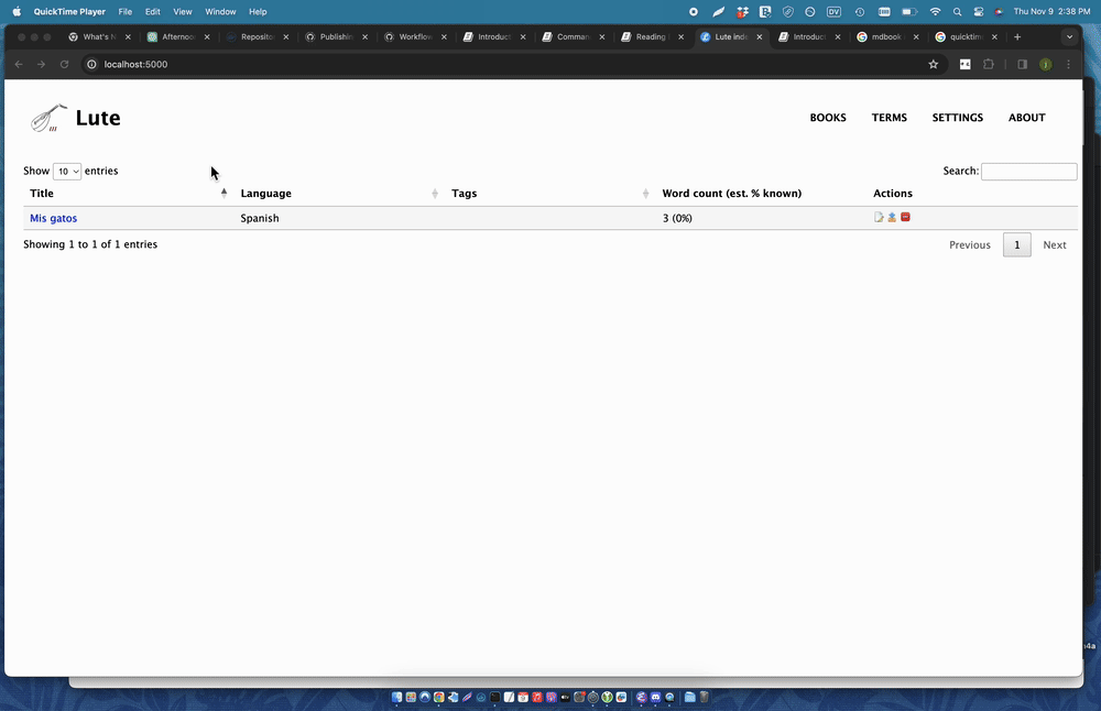To learn more about Lute v3, or to install it for your own use and study, please see the Lute v3 manual.