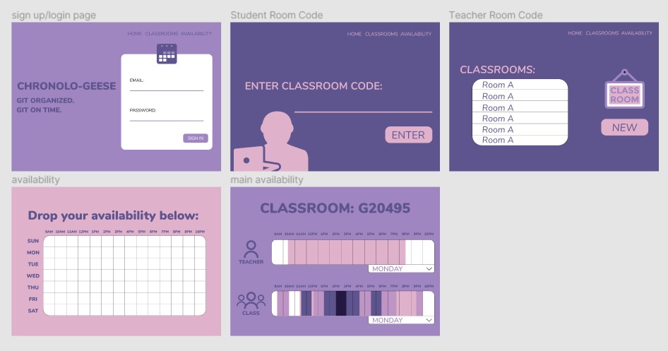 Chronolo-Geese is the best schedule conflict manager for students. It is a simple and intuitive app that lets users input their availability within 7 days through a grid-based schedule selector. Once combined with other users, these schedules will create a heatmap that visualizes the most optimal time to meet up for group projects, study sessions, or office hours with teachers. The darker the color in the heatmap, the more people are available. All users will be able to create an account and provide their availability, which they are free to edit at any time.