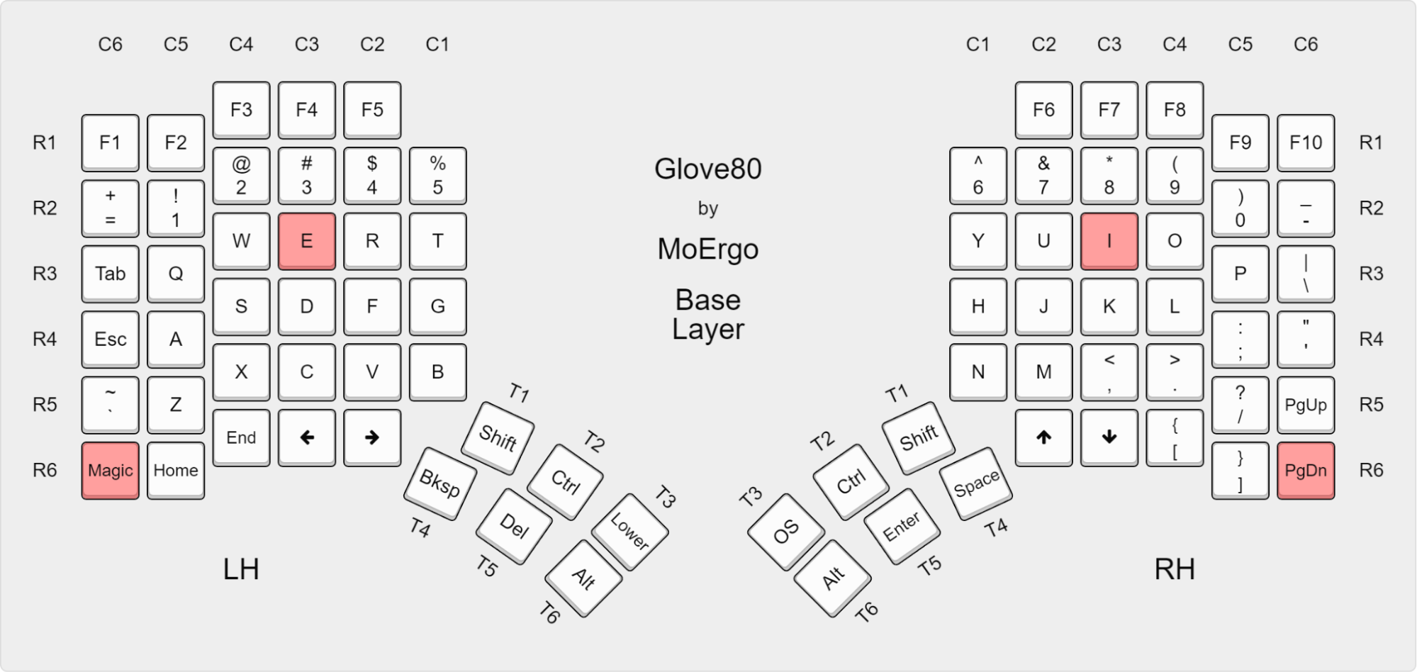 As standard on all Glove80 keyboards, a Magic layer provider access to system utilities, such as Bluetooth settings and RGB lighting config.
