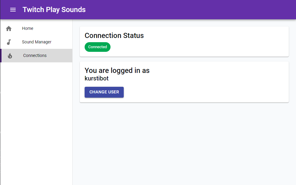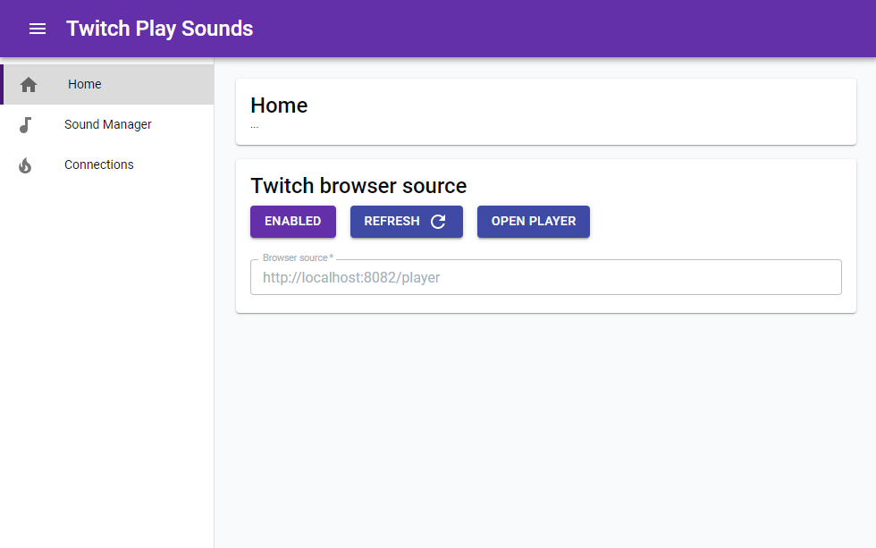 Application opens (by default) to port 8080 so by going to http://localhost:8080 you can access dashboard. After you get access to dashboard, go to connections tab and connect your twitch user into dashboard. When it's successfully connected, go to sounds manager and start adding sound effects. NOTE that only .mp3 files are currently supported! After you have added command, open http://localhost:8080/player as tab or in OBS Browser.