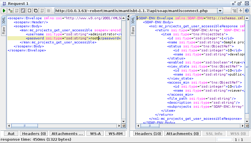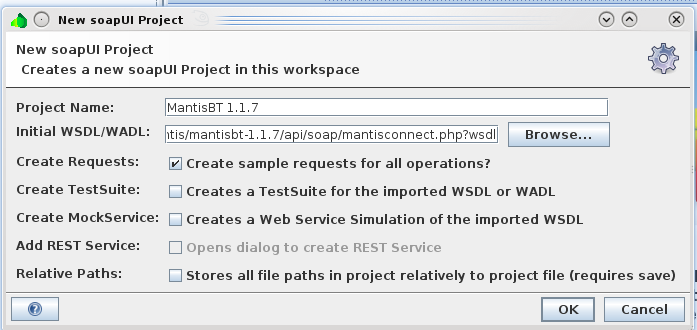 - Create a project for your Mantis installation. The WSDL file should be http://your/install/mantis/api/soap/mantisconnect.php?wsdl