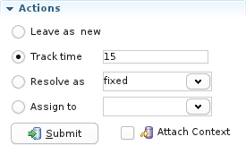 Time tracking is performed by the 'Track time' action at the bottom of the task editor page