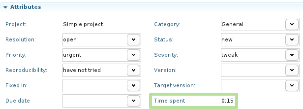 A summary of the time tracked is present in the attributes section of the task editor page