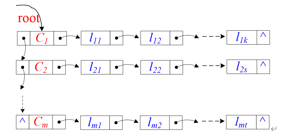 本应用处理的主要数据对象有变元或文字、子句、公式等。同学们可以分析这些数据的逻辑关系及其施加的基本运算而建立相应的抽象数据类型,设计其物理存储结构。如子句有创建createClause、销毁destroyClause、增加addClause、删除removeClause、判断是否为单子句isUnitClause、评估子句的真假状态evaluateClause等运算。由于每个CNF公式变元与子句数可能不同,同一个实例中子句长度也可能不等,一种基本的处理方式是将子句表示为由文字构成的链表;整个公式则是由子句构成的链表,如图2.6所示,这里仅供参考(也许并非最优结构),同学们可自行设计相应的物理存储结构并进行优化,有效支持回溯。