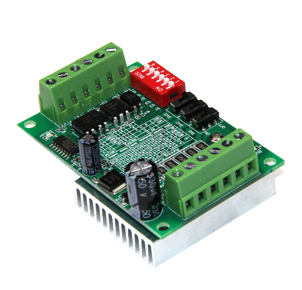 The standard motor drivers (the chips that that plug directly onto the shield) cannot provide sufficient power to the motors for sustaining the weight of the arm. After all, they are designed for low-torque tasks such as in 3D printers. Therefore, we now use a TB6560 stepper motor driver, depicted below, for powering each motor.