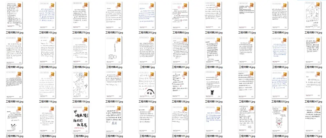 在这些代码基础上,开始下载保存图片。因为一开始没有确认一共有多少感谢信,只设置下载到299张。后来仔细阅读发现,一共其实是608人。