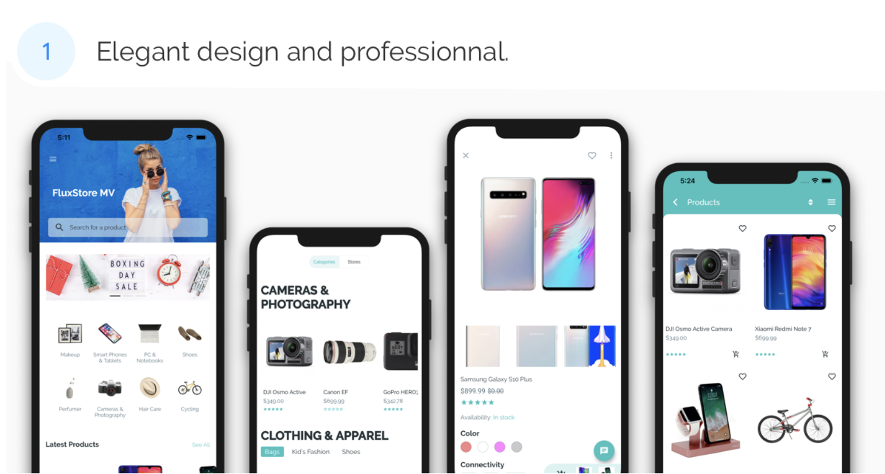 The FluxStore is one of the first flutter templates on the market, but it doesn't make it any less valuable because the authors are working on improving it. Ready e-commerce template with connection to the most popular Cms systems such as OpenCart, WooCommerce, and Shopify. There are all the basic functions necessary for a modern online store. Shortlist of fitch: