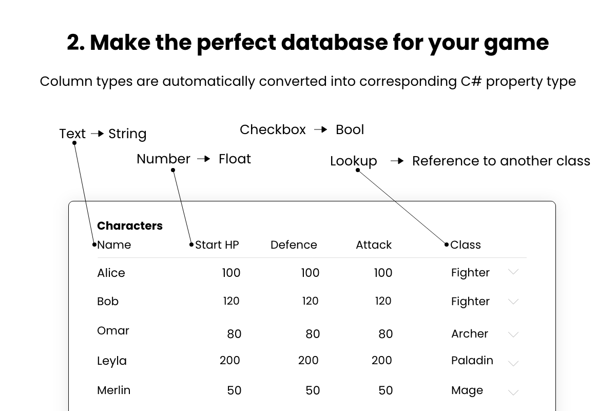 An easy-to-use database system for your Unity Games based on Coda.io. With Coda Sync for Unity, you create and edit all your game’s data in a collaborative environment designed for teams!