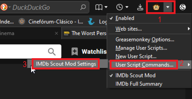 First open URL where the script is activated, for example: https://www.imdb.com/title/tt0088247