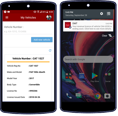 The original DMT app has three main features, which are view ongoing vehicle numbers, vehicle details and revenue license status. This app is an improved version of the previous app with user experience and performance improvements. Also there are new features such as vehicle management, where users can register and track their own vehicles as well as recieve notifications on revenue license stataus. This app has the ability to pay fines of the user online.