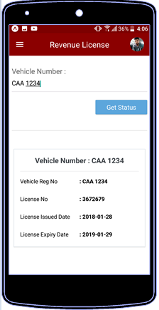 Once user enter the valid vehicle number, it displays the license details of the entered vehicle.