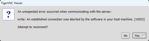 - TigerVNC reports it as 10053 (notification, not a crash)