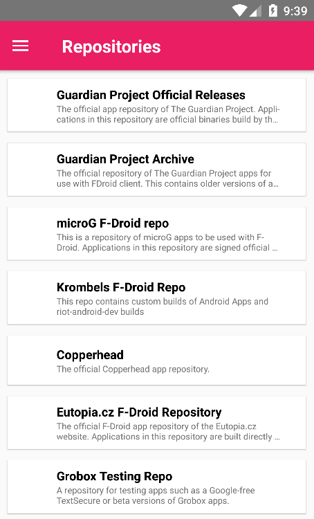 Here is the list of included repositories by default. There is no way to change which repositories the app will fetch for now, but that's definitly a planned feature.