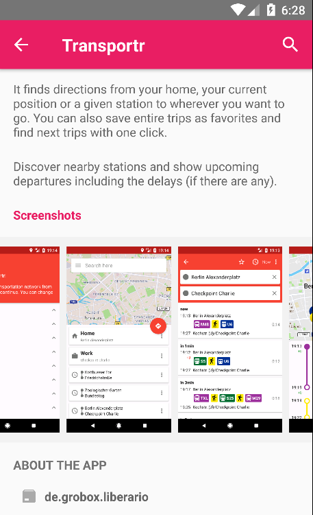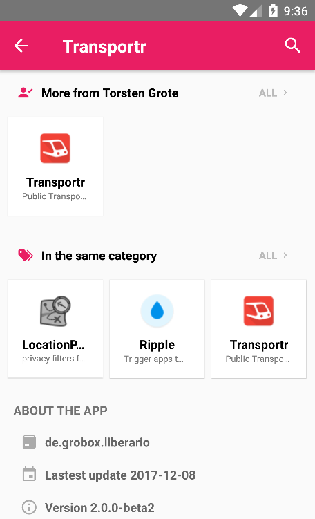 MDroid attempts to mimic F-Droid features as much as possible, in a Material design fashion. Here's a (not ordered) list of actual MDroid's features: