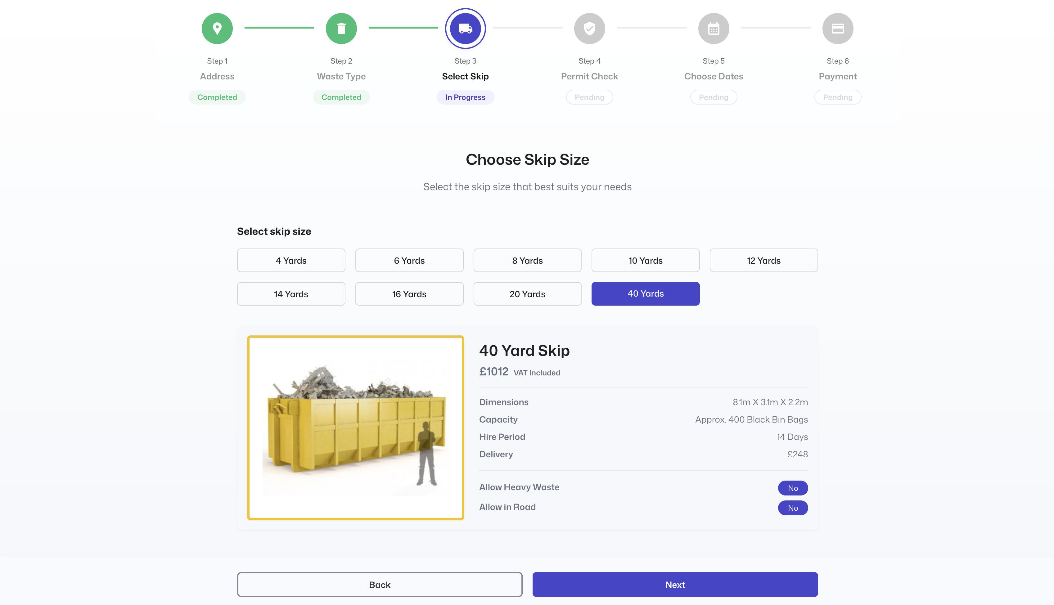 A modern web application for efficient waste management and skip hire services. This platform helps users find and book appropriate skip sizes for their waste disposal needs.