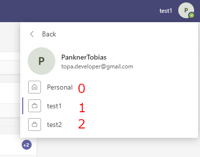 organisation_num: If your Teams account is in multiple organisations, as seen in the example below, change the organisation_num to the number of the list item (counting starts from 0), set to -1 to never change organisation.