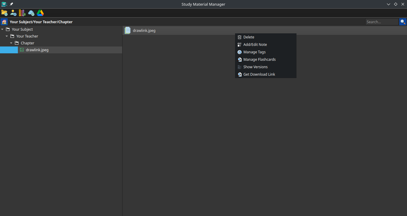 - Drag and Drop: Effortlessly add new files to your study material collection with simple drag and drop functionality.