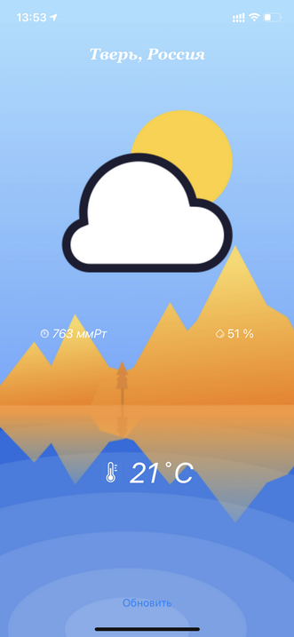 Automatically detects location and displays weather for a given place. Supports russian and english languages and dynamic change of time of day (day and night graphics).