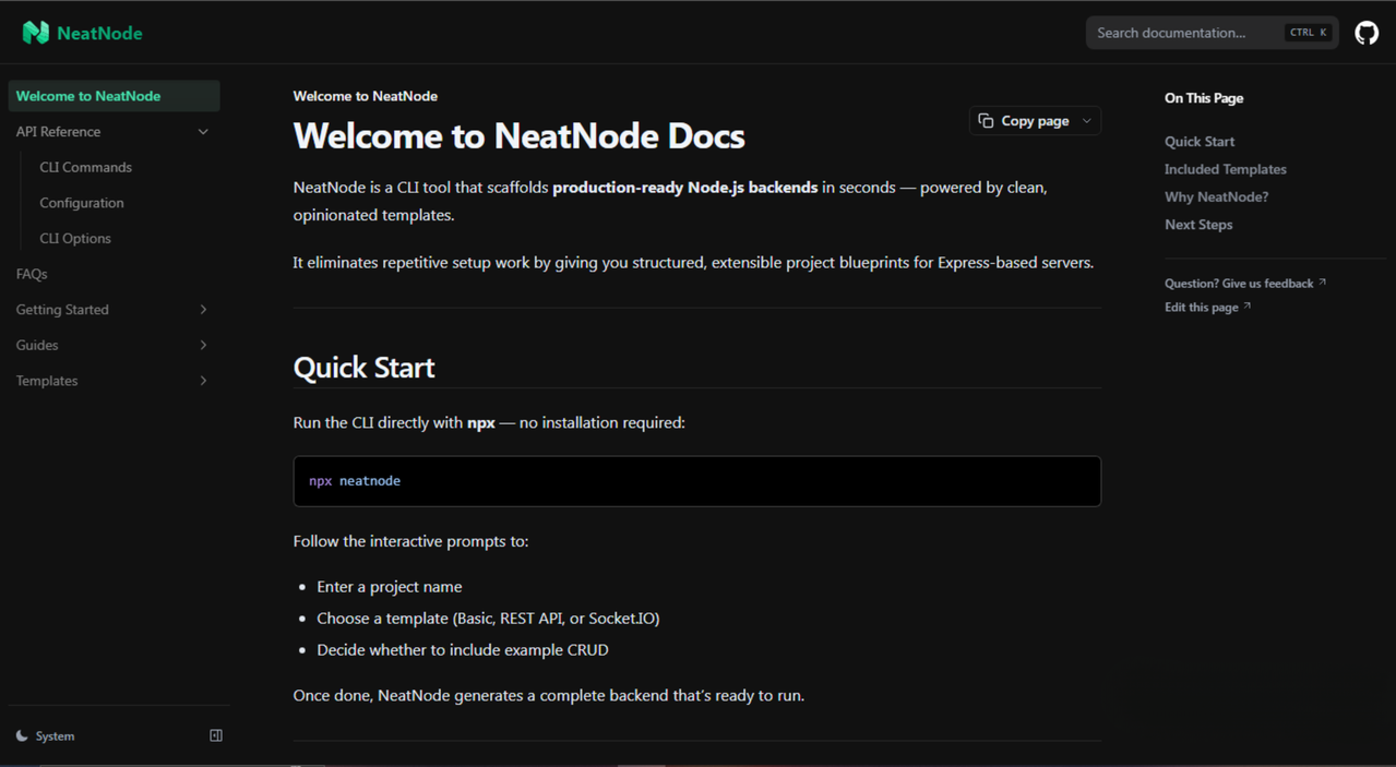 NeatNode is a plug-and-play CLI tool that scaffolds clean, production-ready Node.js backend projects in seconds.