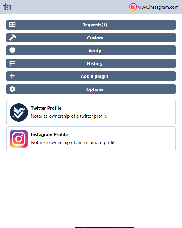 index.wasmfile you built in step 1. A Instagram Profile button should then appear below the default buttons. - Click the Instagram Profile button. This action opens the Instagram webpage along with a TLSNotary sidebar.